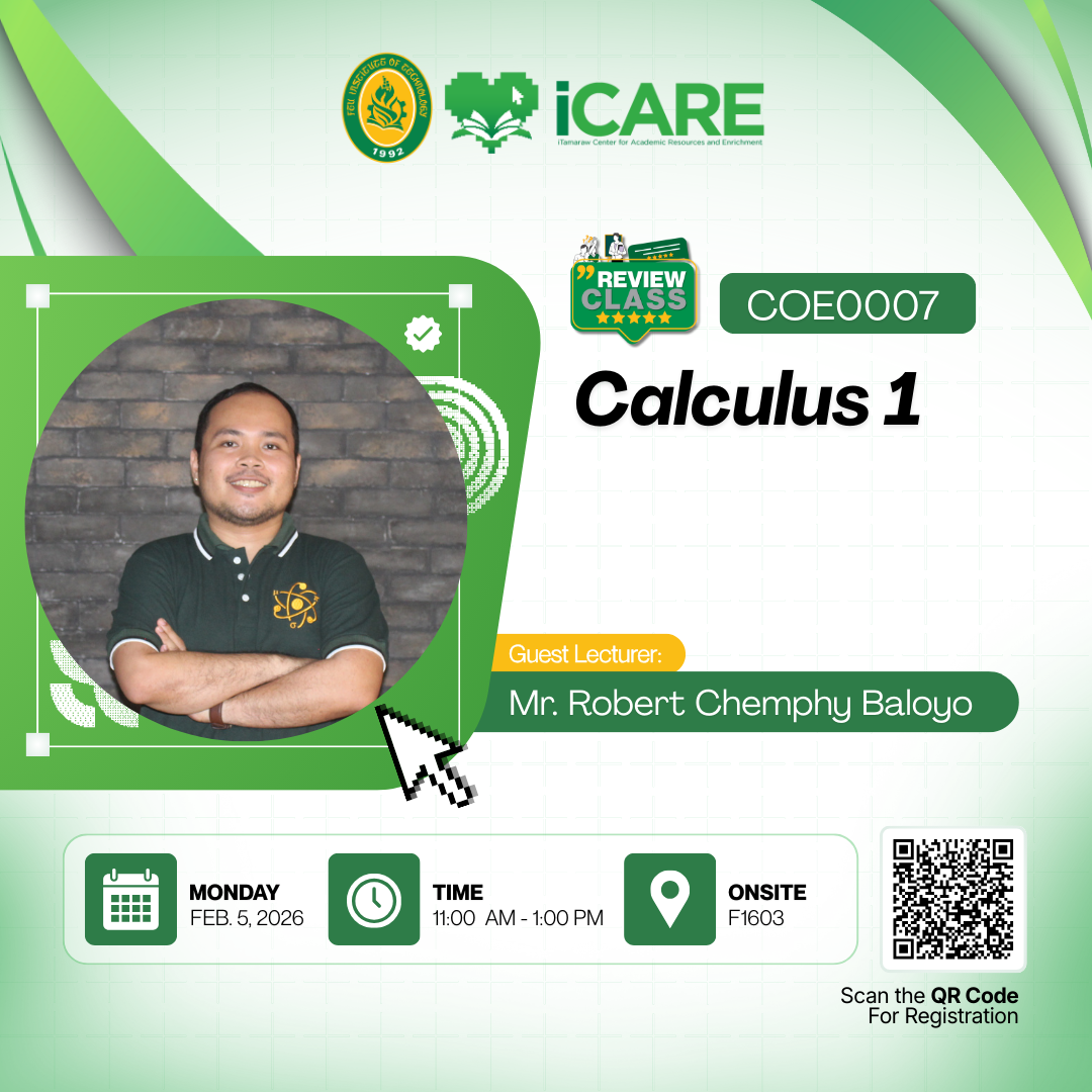 Gear up for your COE0007 Calculus 1 with a focused review session led by Mr. Robert Chemphy Baloyo of the Mathematics and Physical Sciences (MPS) Department.
