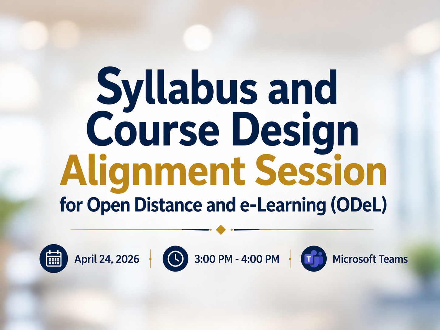 This session is a collaborative space for faculty members to review, align, and enhance their existing residential syllabus, as well as create a course pack for ODeL delivery. Rather than starting from scratch, we’ll focus on adapting what we already have to ensure quality, consistency, and alignment with ODeL standards.
