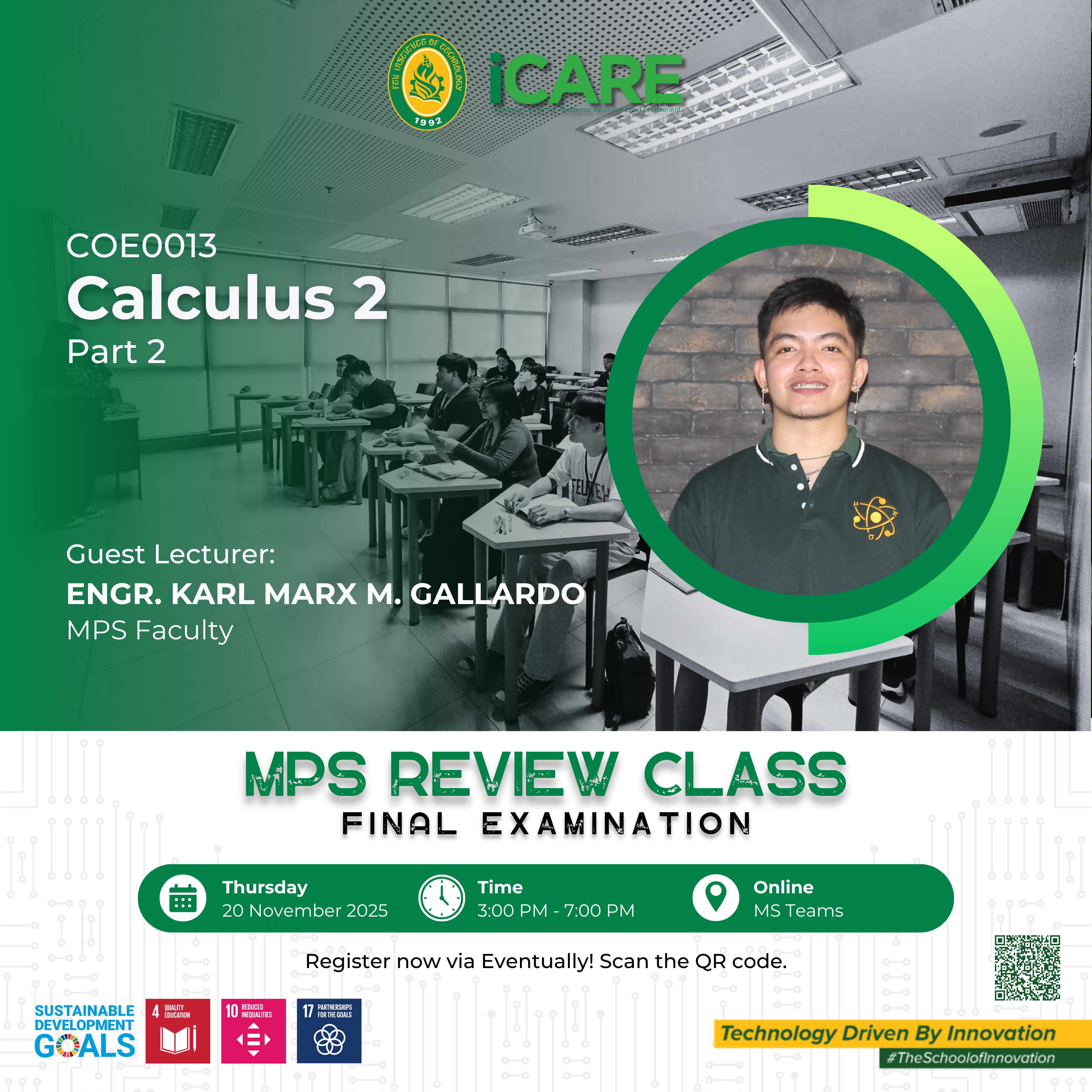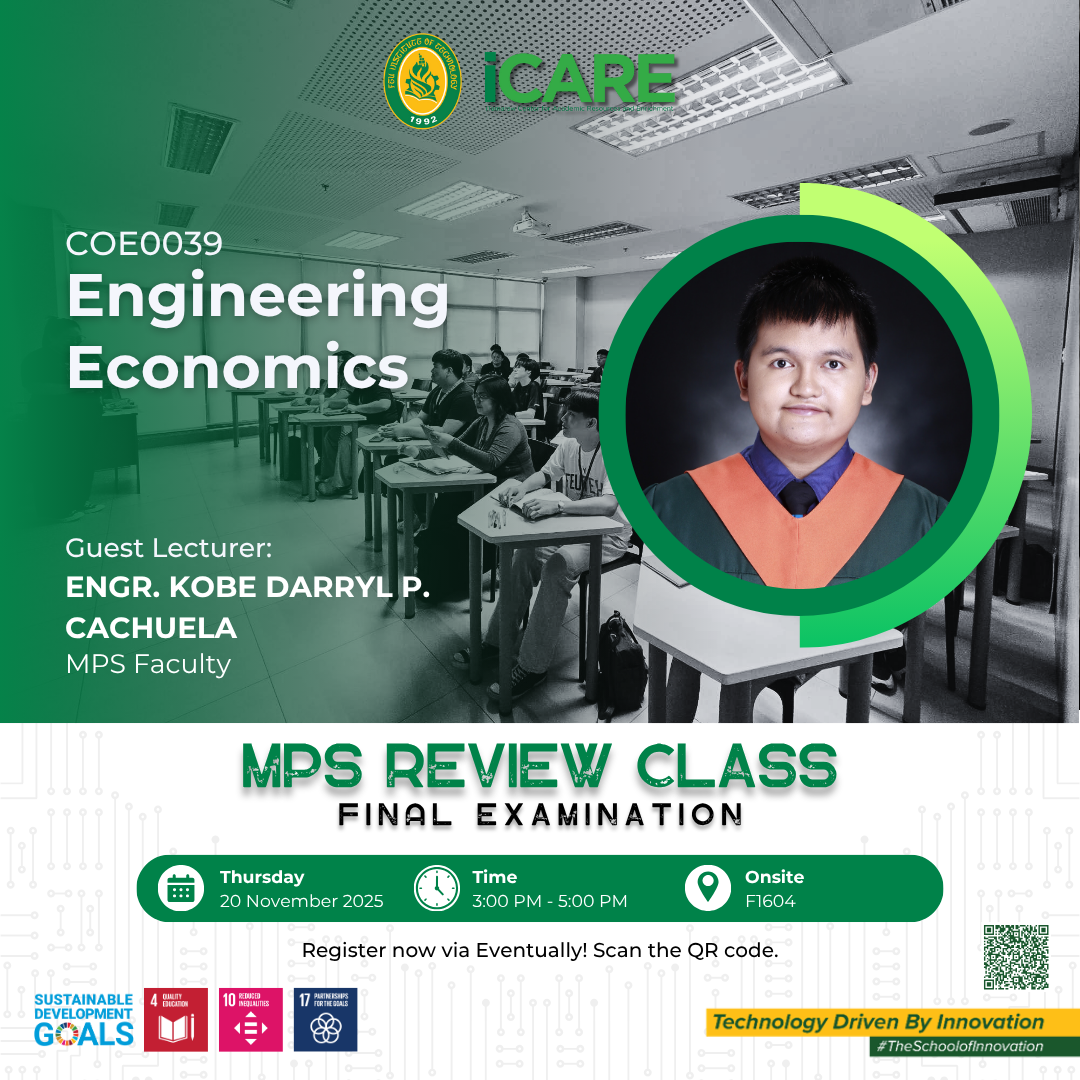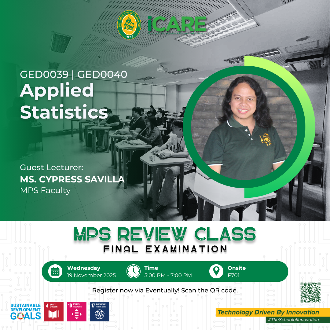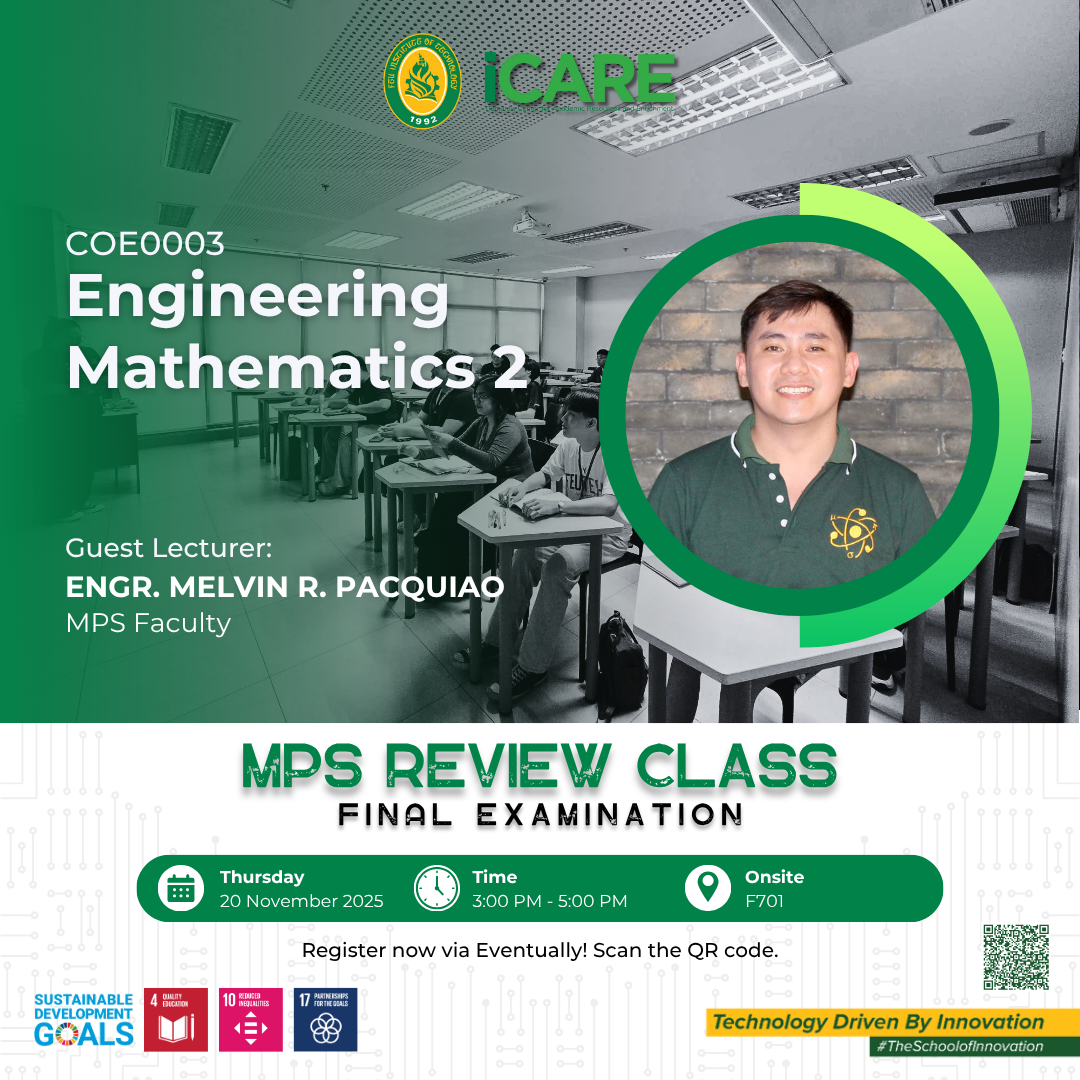 Beyond academic support, iCARE cultivates an engaging learning culture by offering co-curricular activities, civic and social awareness programs, learning pathways, and community outreach initiatives. The center also plays a key role in preparing students for professional certification and licensure examinations through targeted review programs. In partnership with faculty, departments, and external collaborators, iCARE empowers learners to thrive academically, grow professionally, and become well-rounded individuals equipped for future challenges.