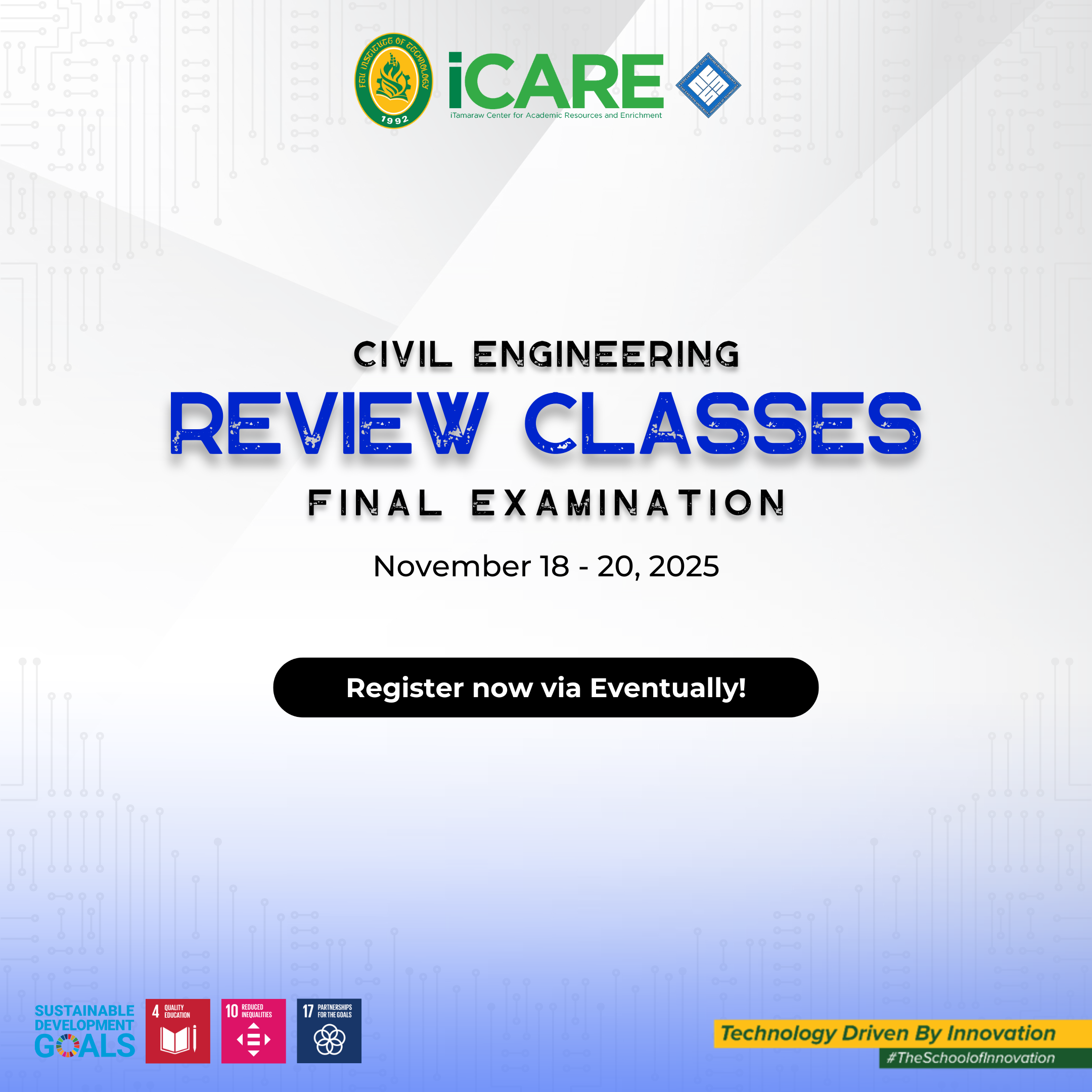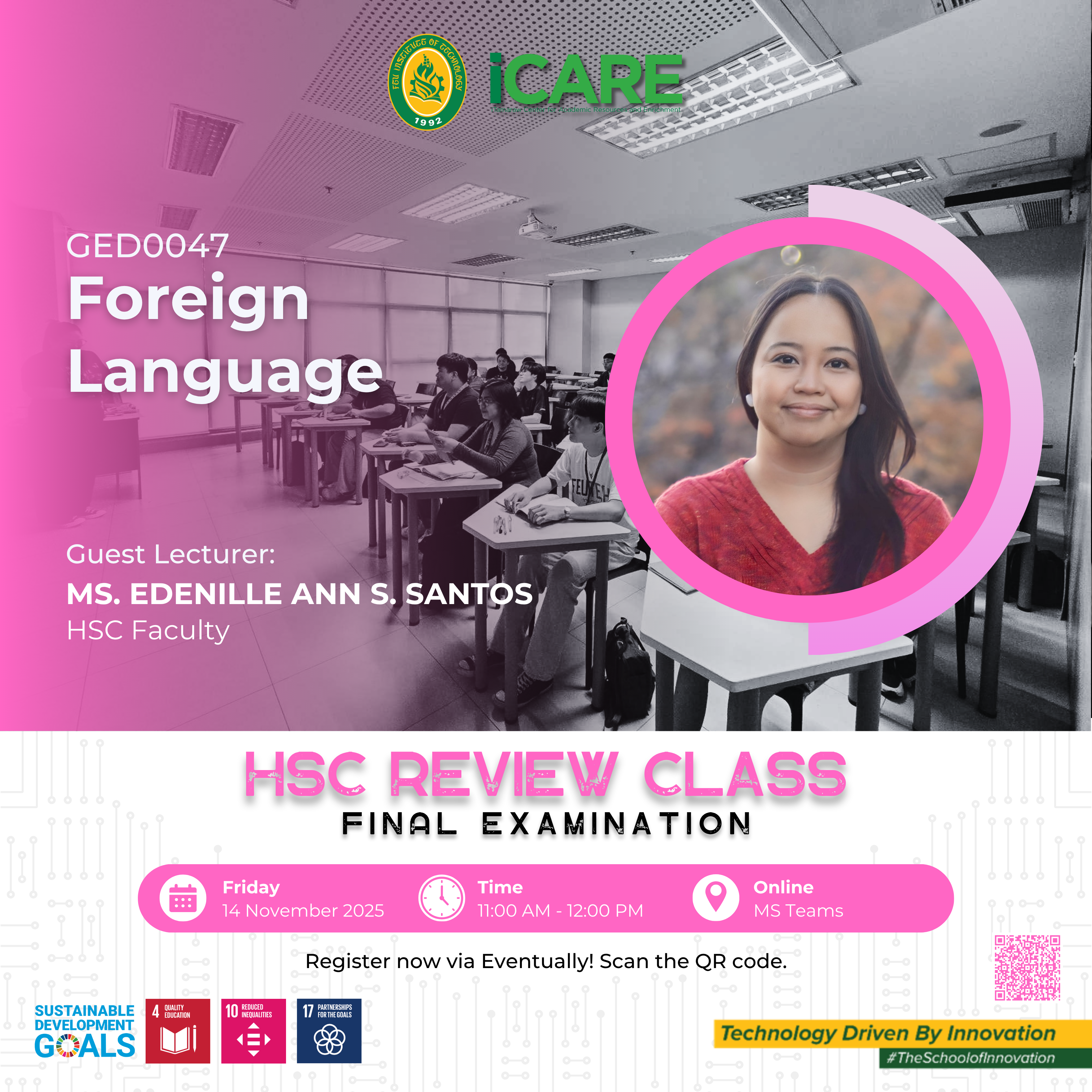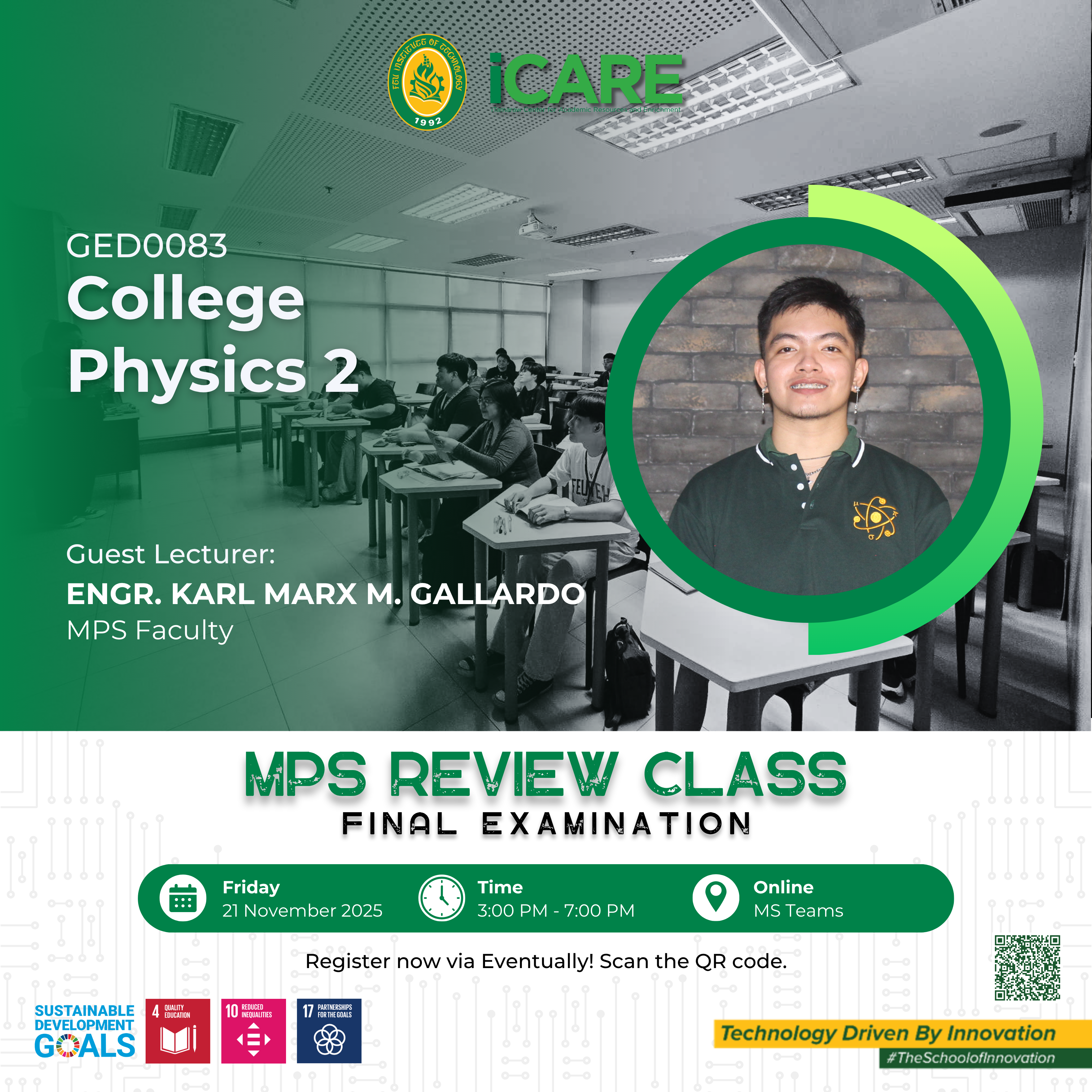 Beyond academic support, iCARE cultivates an engaging learning culture by offering co-curricular activities, civic and social awareness programs, learning pathways, and community outreach initiatives. The center also plays a key role in preparing students for professional certification and licensure examinations through targeted review programs. In partnership with faculty, departments, and external collaborators, iCARE empowers learners to thrive academically, grow professionally, and become well-rounded individuals equipped for future challenges.